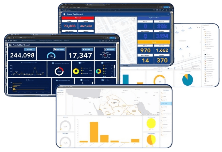 Our GeoFM dashboard provides a comprehensive, real-time overview of your geospatial assets and utility operations. With an intuitive interface, users can visualize data trends, monitor system performance, and make informed decisions efficiently. From detailed maps and analytics to customizable reporting, the dashboard centralizes all critical information, enabling seamless management of your fiber, water, and electric networks. Designed for clarity and speed, it empowers teams to respond proactively, optimize resources, and ensure smooth operations across all utility domains.