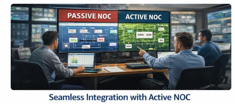 A Passive NOC complements Active NOC operations, providing a complete end-to-end network view.